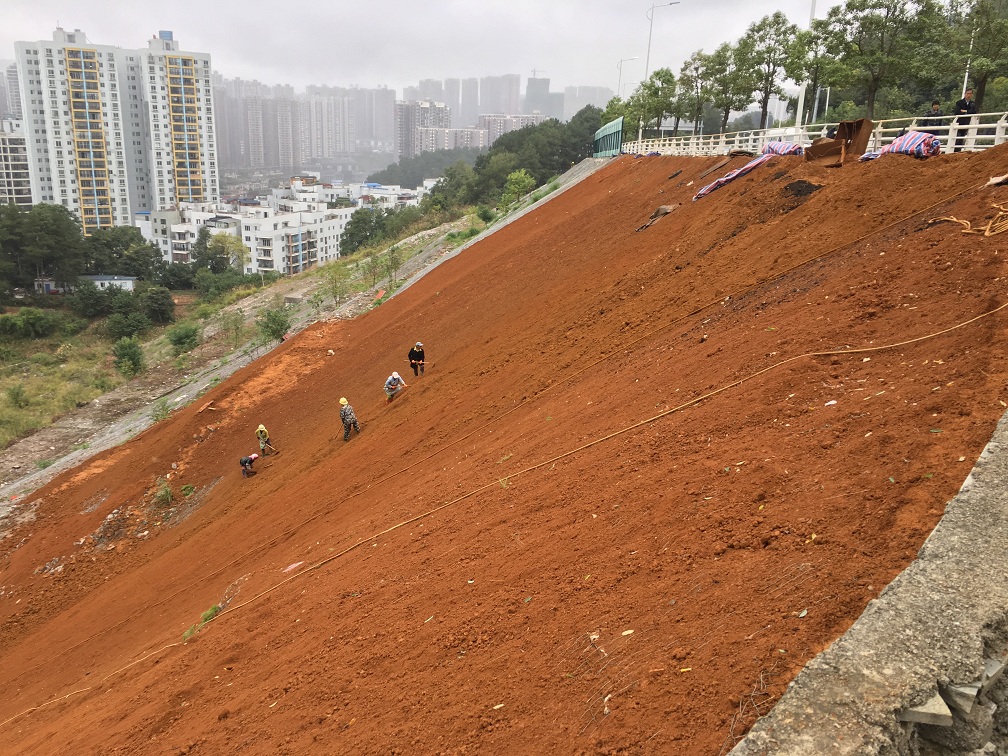 自百山項(xiàng)目以來(lái),我公司為百山項(xiàng)目各類(lèi)大小邊坡做出因坡制綠的邊坡治理方案,根據(jù)邊坡情況選擇客土噴播、生態(tài)袋綠化、種植樹(shù)苗綠化等方案。