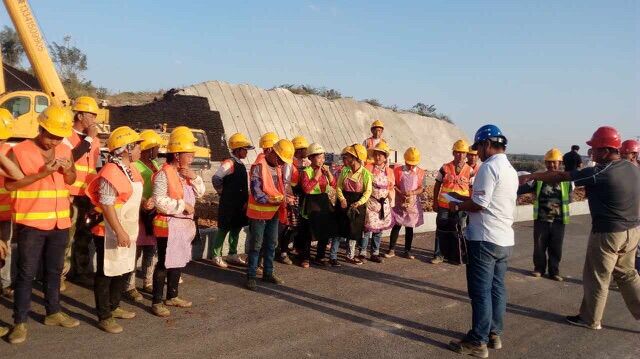 安全監(jiān)督小組給工人進(jìn)行安全教育